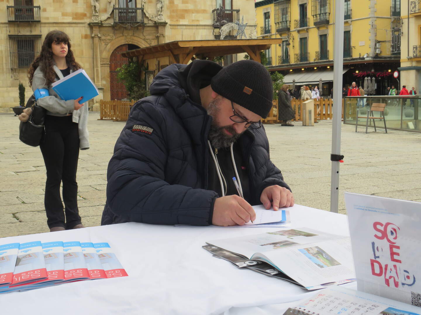 La campaña se mantendrá activa hasta el final de la Navidad en https://hospitalsanjuandedios.es/cartas-que-acompanan/ y se proyectará en los mupis digitales del Ayuntamiento de León. A mediodía, los concejales Vera López y Jon Ander se acercaron a la carpa para mostrar su respaldo a la iniciativa, que en su segunda edición contó con dos voluntarios muy especiales: Tomás Ribeiro y Jaime Llamas, de la Cultural y Deportiva Leonesa.