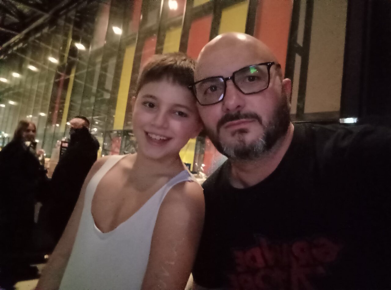 El promotor musical leonés, Álvaro Ferrero, junto a su hijo en el último concierto de La M.O.D.A. en León.