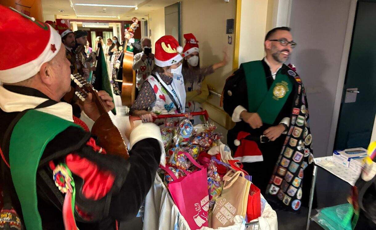 Como viene siendo costumbre, un año más pero con la misma ilusión que años anteriores, la Tuna de la Universidad de León, con el apoyo de su madrina, la Dra. Elena Bollo de Miguel, directora médica del Complejo Asistencial Universitario de León (CAULE), acompañada de la subdirectora médica de Servicios Centrales, la Dra. María Dolores Ruiz de Villa Izquierdo, ha acudido este sábado a su cita con los más pequeños, rondando y llevando unos detalles a todos los niños y niñas ingresados en el Hospital Universitario de León, junto al personal de Pediatría y a voluntarios del CAULE, que contribuyeron a la organización del evento.