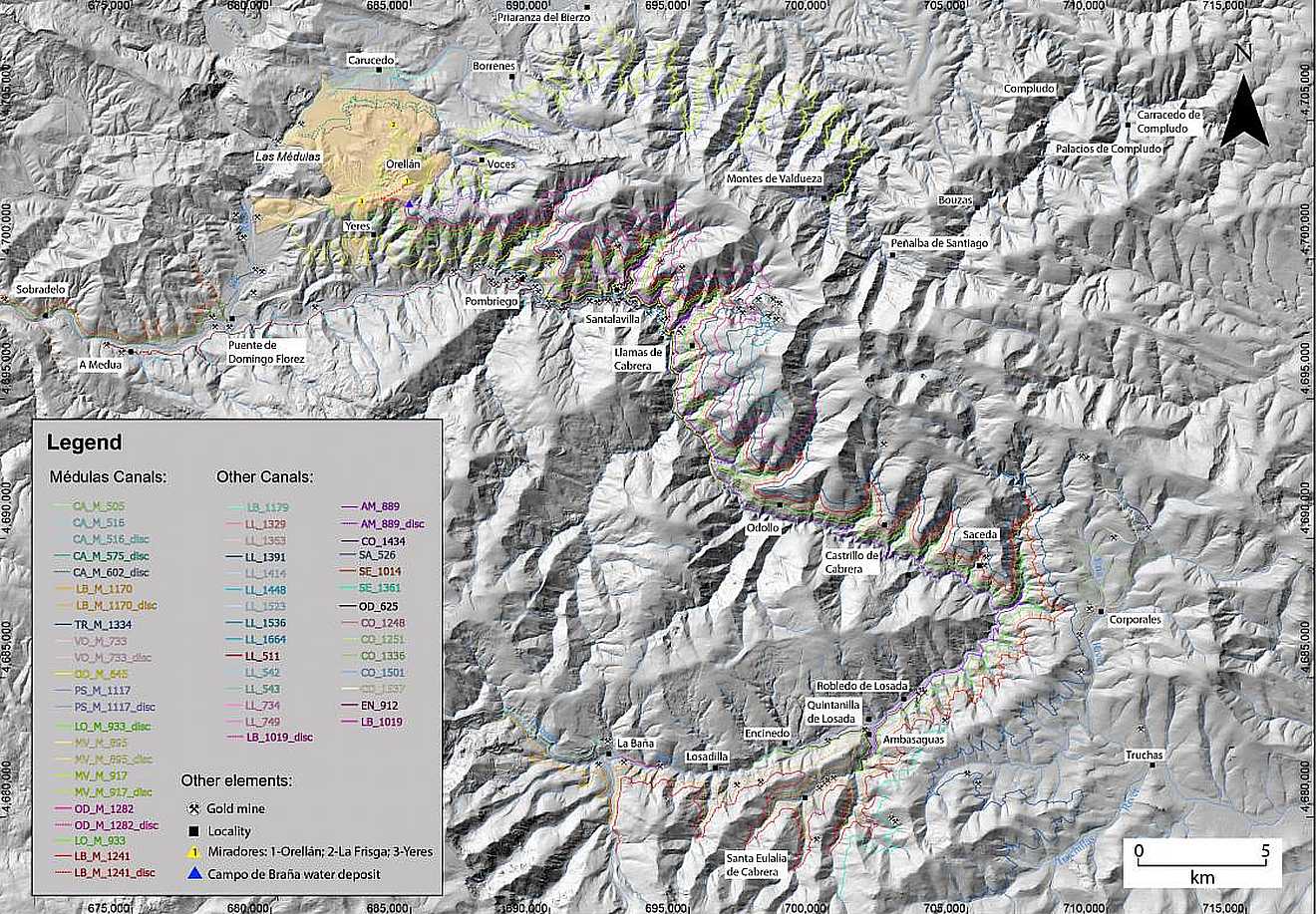 Un estudio que, según señala Fernández Lozano, ha servido para resolver algunas discrepancias existentes hasta la fecha, así como inexactitudes que complicaban la reconstrucción de todo el sistema hidráulico. “Las cartografías existentes hasta la fecha proporcionaban 700 kilómetros de canales, pero dejaban fuera un importante número de ellos que sirvieron para explotar los sectores inferiores, próximos a Las Médulas, y que tuvieron una relevancia determinante a la hora de prospectar en busca de los grandes yacimientos, quizás porque no se había vertebrado todo el conjunto de explotaciones presentes en la zona”..