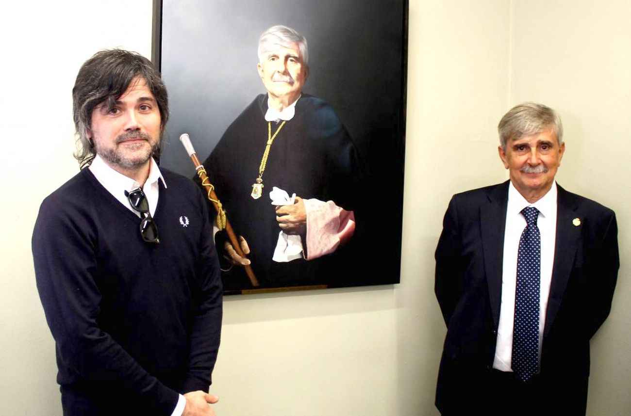 El exrector, acompañado por su sucesora, Nuria González, y arropado por numerosos miembros de la comunidad universitaria, familiares y amigos, ha descubierto la pintura realista del artista Borja Bonafuente