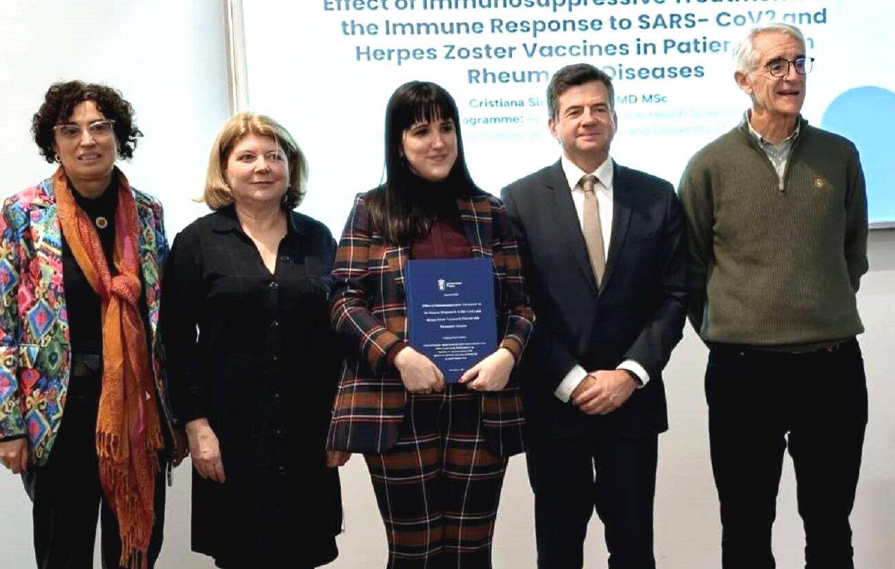 Se trata de una tesis por compendio de publicaciones que integra tres artículos científicos publicados en revistas de alto impacto internacional, titulada ‘Efecto de los tratamientos inmunosupresores sobre la respuesta inmunitaria a las vacunas frente al SARS-CoV-2 y el herpes zóster en pacientes con enfermedades reumáticas’, dentro del programa de Doctorado Investigación Aplicada a las Ciencias Sanitarias por la Universidad de Las Palmas de Gran Canaria y la Universidad de León.