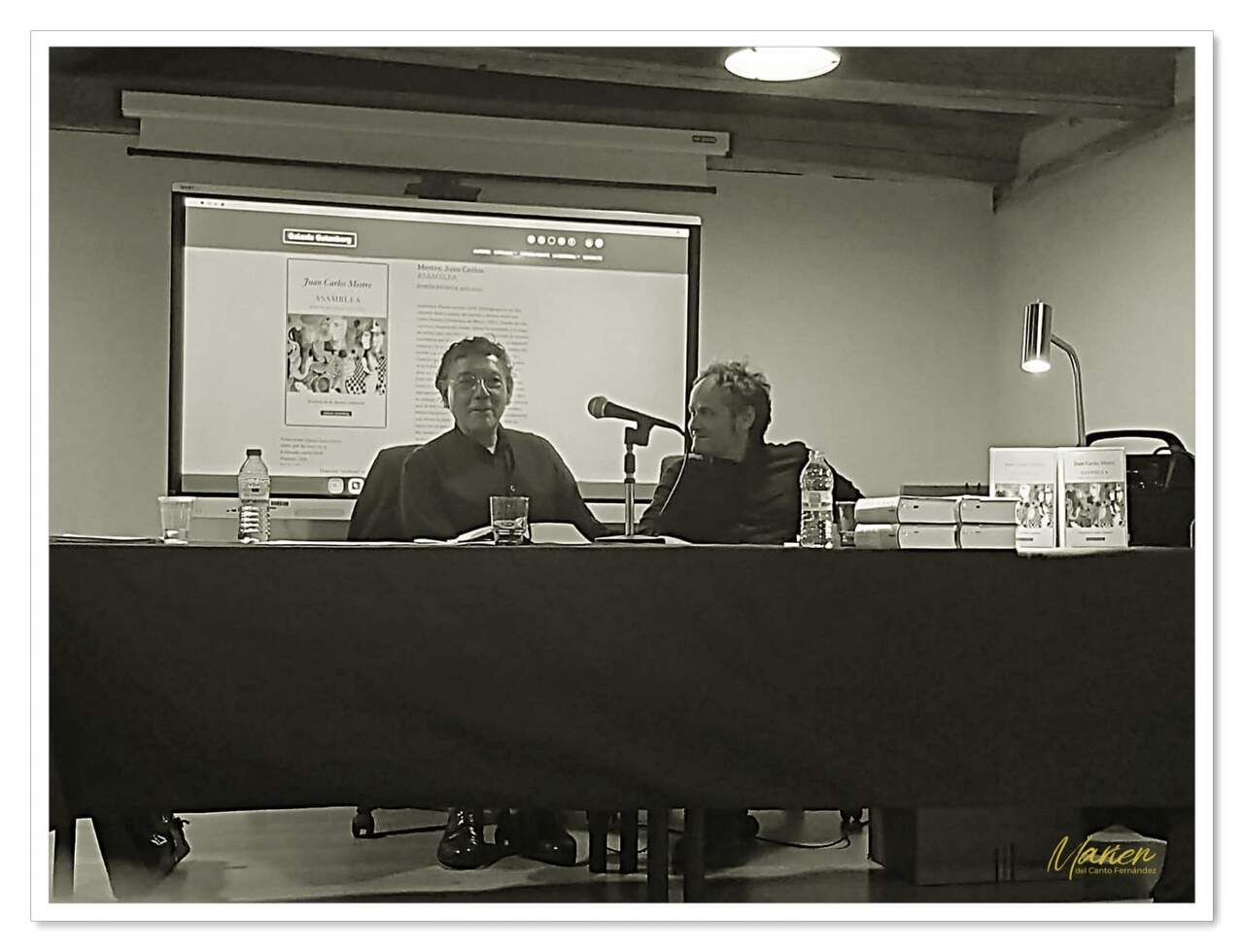 Héctor Escobar (Eolas Ediciones), como buen anfitrión, fue guiándole por los títulos de sus libros hasta llegar a la actualidad con Asamblea.