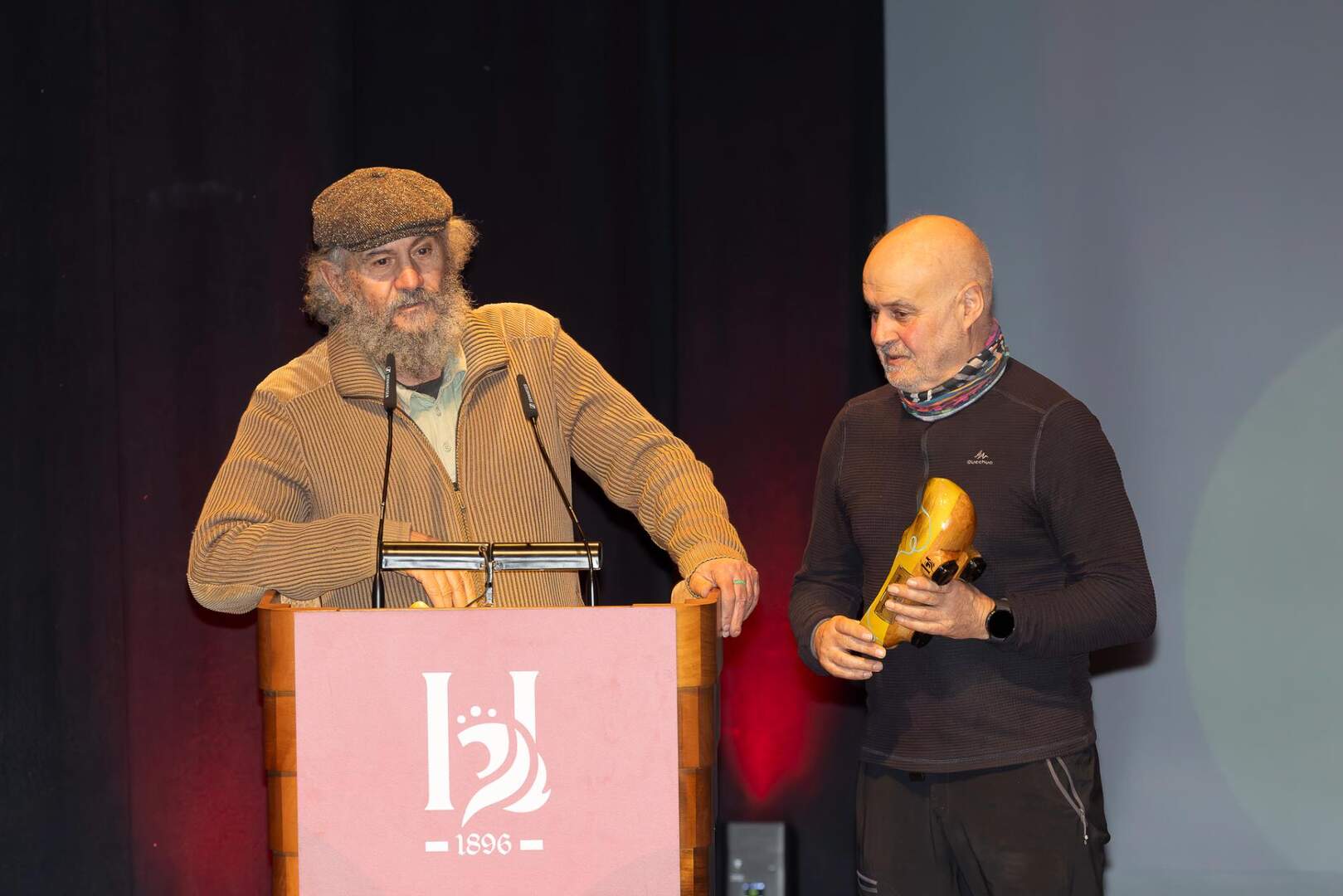 Mauricio Peña y Fulgencio Fernández, “Tío Ful”, recogieron la madreña en reconocimiento a su compromiso con la tierra. La anécdota relatada por “Tío Ful”, vivida con su abuela, se puede resumir en una frase muy significativa: “Está empezando a nevar”.