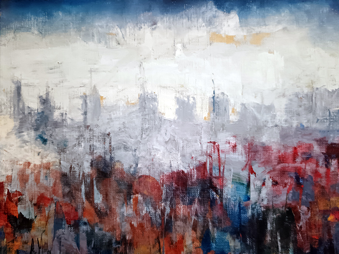 En su obra pictórica se muestran lo que algunos definen como los estados sutiles del alma, un alma en la que anidan tanto la pasión por la hermosura y la belleza como la soledad y la nostalgia. …Y el amor a la tierra. Una tierra sintetizada en sus desfile de pendones: líneas de pendones tremolantes, sobre una teoría de campos de colores electrizantes y caóticos.